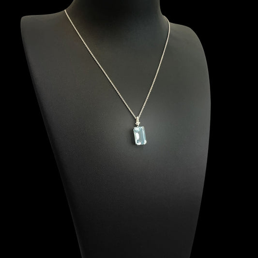 ISADORA JEWELLERY 18ct White Gold Blue Topaz with Diamond Pendant