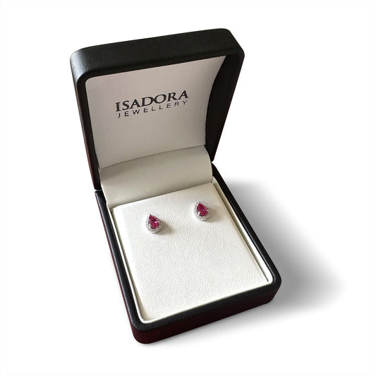 ISADORA JEWELLERY Lab Created 6x4mm Oval Red Ruby and Lab Created White Sapphire Sterling Silver Earrings