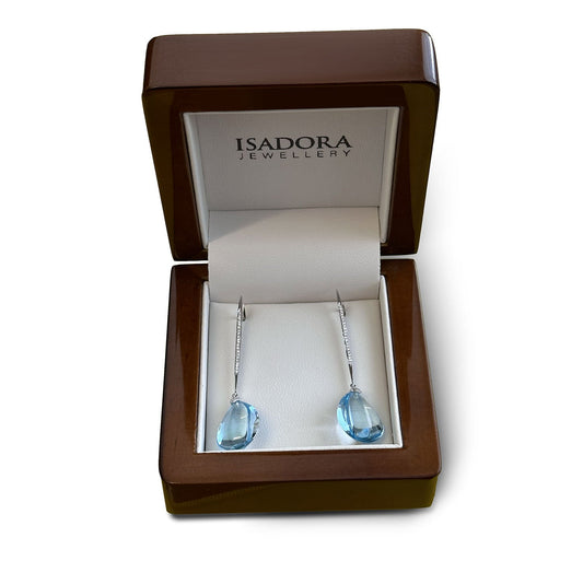 ISADORA JEWELLERY 18ct White Gold Blue Topaz and Diamond Earrings